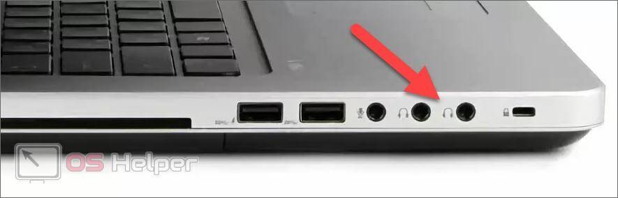 На ноутбуке разъем для подключения гарнитуры выглядит похожим образом. На рисунке ниже вы видите сразу два гнезда для вывода аудио. Тут можно вставить одновременно пару наушников. К сожалению, под телефонный штекер разъемы не предусматриваются.
