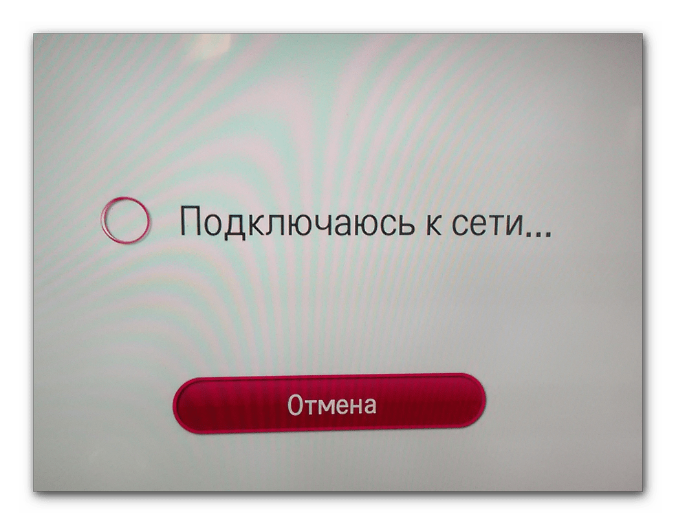 Соединение начинается, о чём уведомляет сообщение на экране. Об окончании процесса сигнализирует надпись, что сеть подключена. Можно покидать меню и пользоваться ТВ.