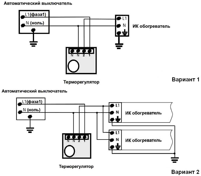 Схема подключения терморегулятора к инфракрасному бытовому обогревателю выбирается в зависимости от используемого устройства, опыта и знаний специалиста по монтажу электрооборудования.