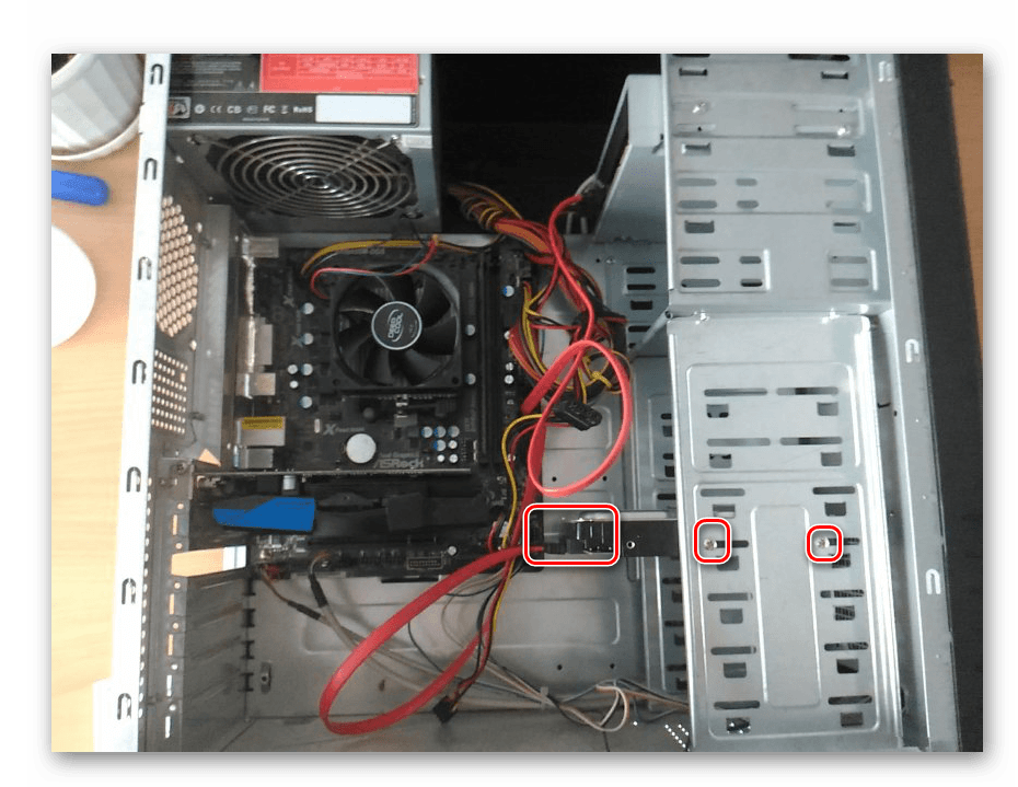 Теперь необходимо зафиксировать лоток с диском в предназначенной для него ячейке системного блока. По сути, вам нужно выполнить процедуру, обратную извлечению компьютерного накопителя, то есть прикрутить его комплектными винтиками с обеих сторон.