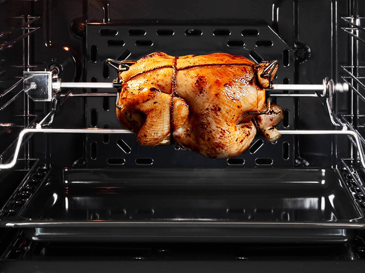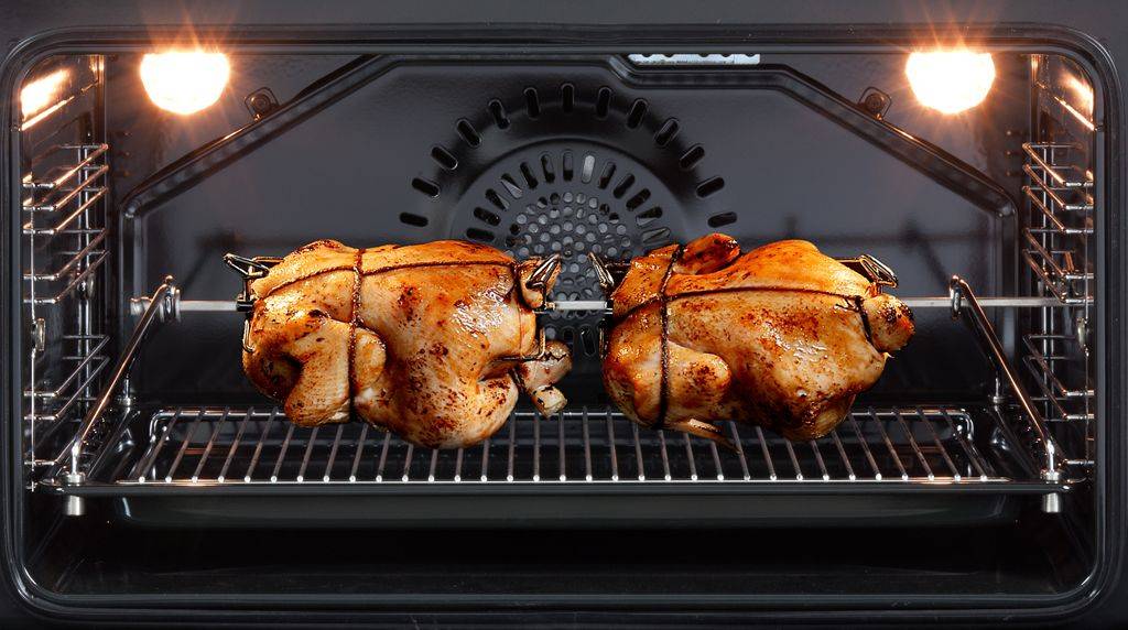 Эта функция доведена до совершенства в газовых духовках. Вовнутрь вставляется металлический прут удлиненной формы, на который нанизывается мясо. Это позволяет ему равномерно приготовиться со всех сторон, приобрести характерную мягкость, сочность и золотую корочку.