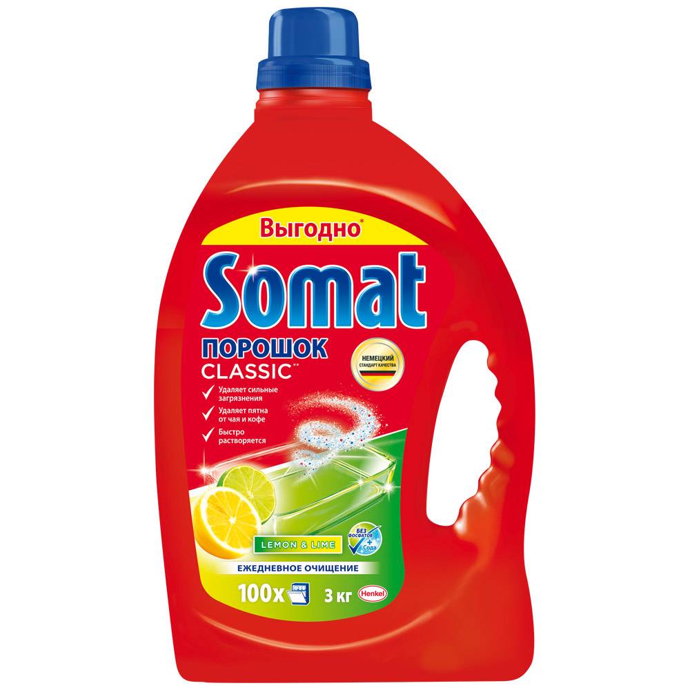 Это всевозможные гели, порошки и таблетки. Их можно купить в любом хозяйственном магазине. Для мойки будет достаточно одной дозы. Лучше всего отдать предпочтение порошку, так как его легче дозировать, и он быстрее активизируется.