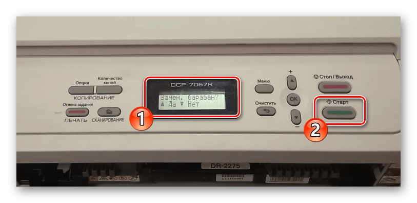 Приведенные ниже инструкции будут оптимальными для большинства моделей печатных устройств от Brother, поскольку все они имеют схожую конструкцию и довольно часто оснащены картриджем TN-1075. Мы рассмотрим два способа. Первый подойдет пользователям МФУ и принтеров со встроенным экраном, а второй же является универсальным.