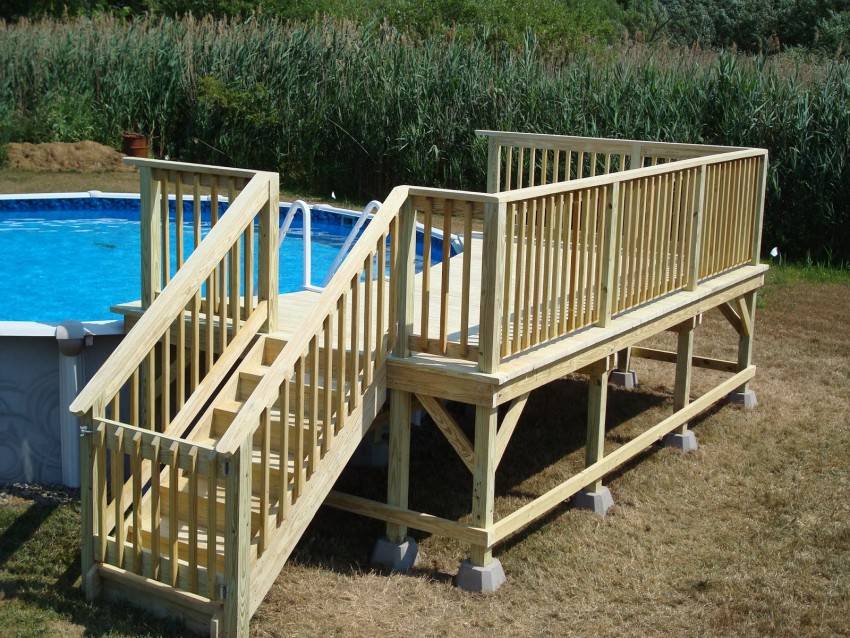Подняв стойки выше уровня бассейна на 1,5…2 м, можно натянуть над ним тент или установить навес из поликарбоната.