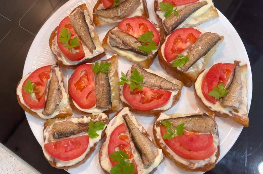 Это аппетитное лакомство готовится примерно за 10 минут, что позволяет сэкономить свободное время хозяйки. Бутерброды, приготовленные по данному рецепту, идеально подойдут для легкого праздничного перекуса в ожидании горячего блюда.