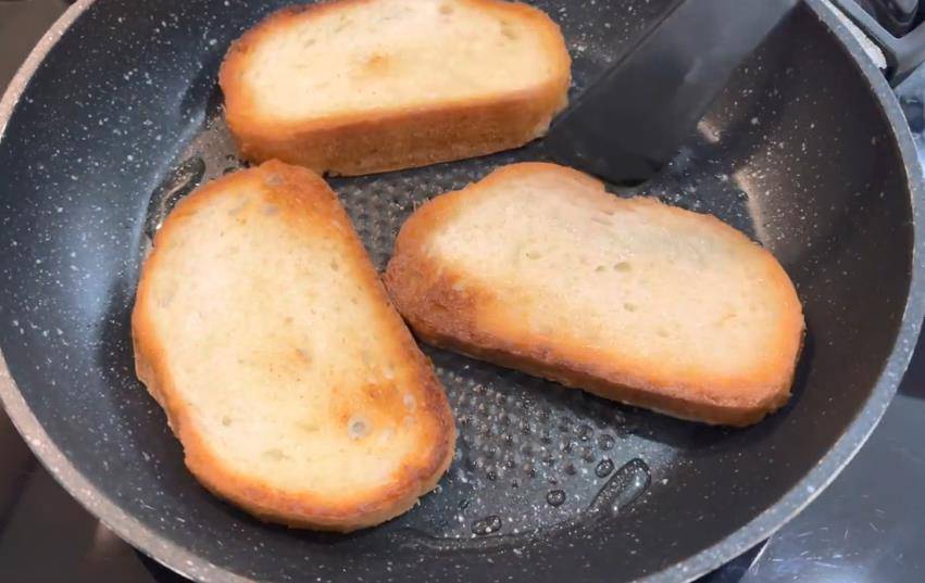 - Затем поджарьте хлеб в тостере или на сухой сковороде до хрустящей корочки.