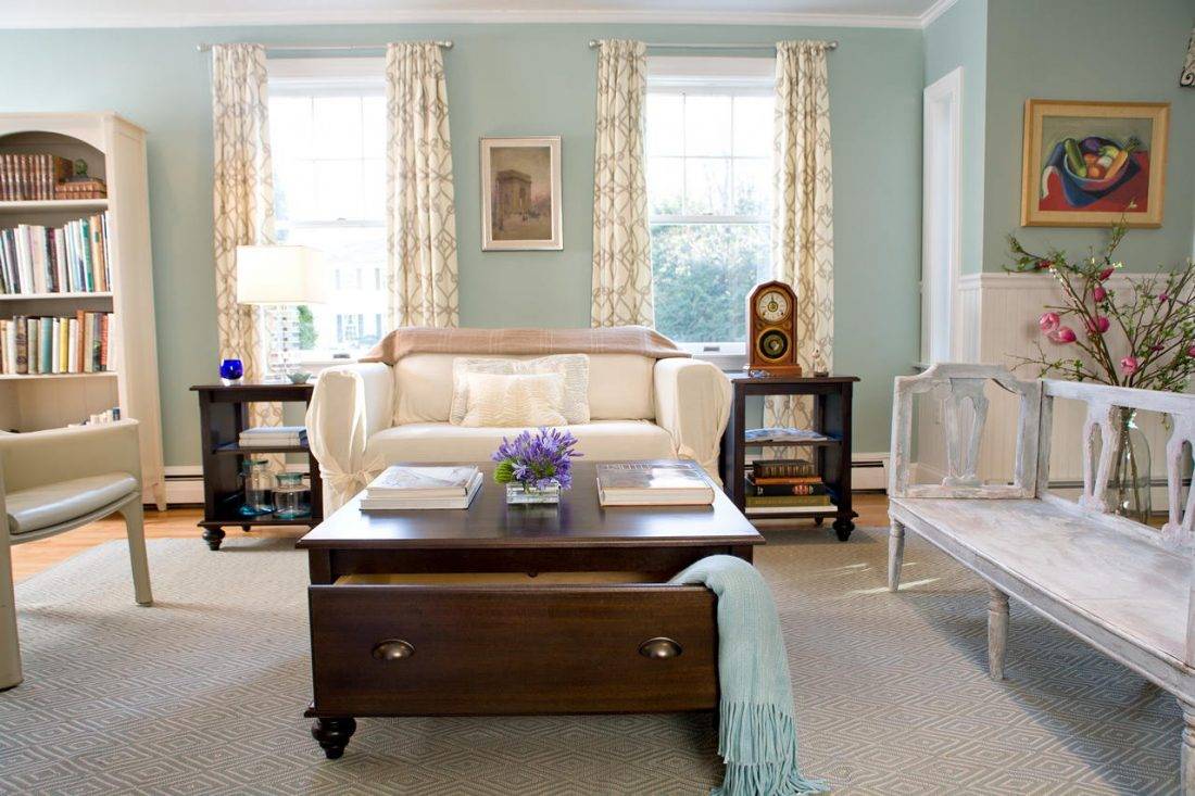 Но помните, что стиль не предполагает размещения в комнате большого количества тяжелых, громоздких предметов. Стоит сочетать антикварную или стилизованную антикварную мебель и аксессуары с более легкими элементами, например, такими, как тонкие шторы, цветы в ярких горшках или стены, окрашенные в нежные пастельные тона.