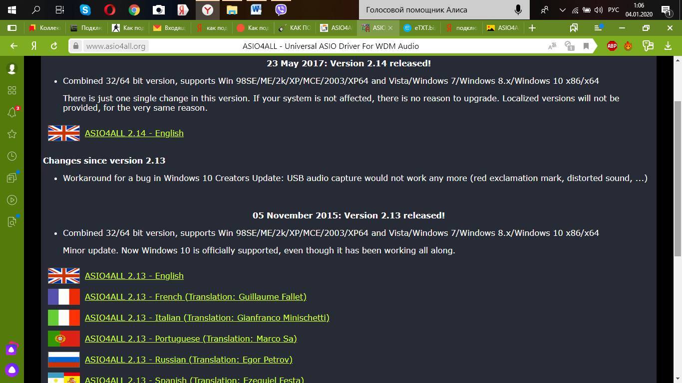 Следует обратить внимание – русскоязычная версия разработана в 2015г, англоязычный вариант обновлен в 2017г. Преимущества ASIO4ALL: