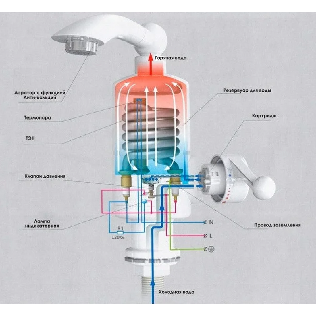 Для работы некоторых моделей требуется специальный смеситель низкого давления. Если оно не соответствует техническим возможностям прибора, срабатывает механизм отключения. Возобновить работу нагреватель сможет только после нормализации давления.