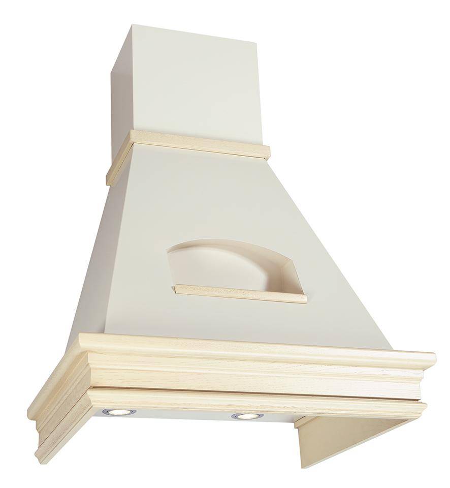 - Купольные вытяжки (также их называют вытяжками каминного типа). Самый популярный форм-фактор, они представляют собой «зонтик», который продолжается уходящей вверх трубой. Крепятся они обычно на стену над варочной поверхностью.