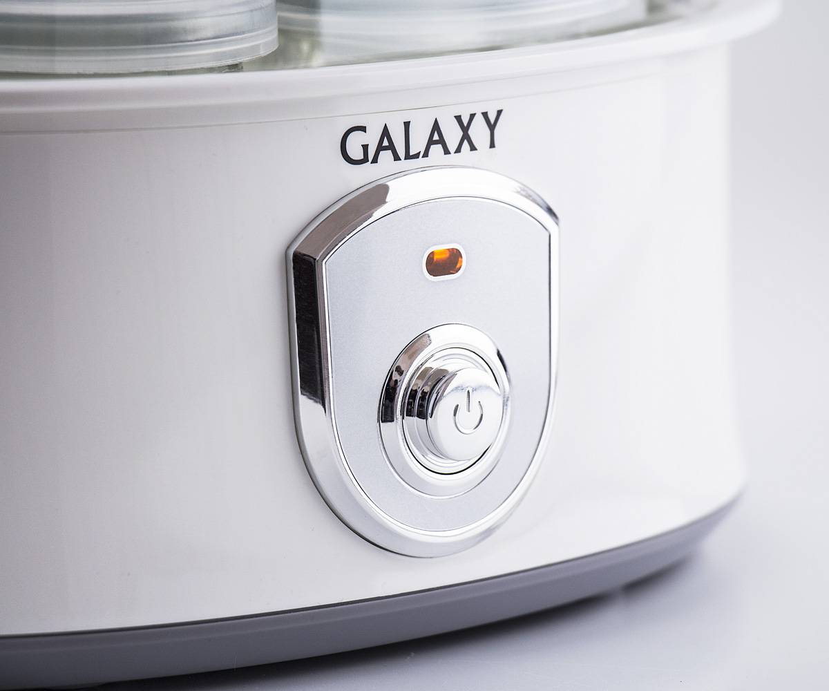 Позиция 8 в ТОПе лучших отдается аппарату Galaxy GL2692. Здесь установлена одна пластиковая емкость объемом 1 л. Управление – электронное. Предусмотрен таймер с установкой до 48 ч. Имеется звуковой сигнал, сообщающий о готовности продукта. Потребляемая мощность — 20 Вт. Габариты: круг диаметром 15 см, высота – 22 см. Масса – 1,6 кг.