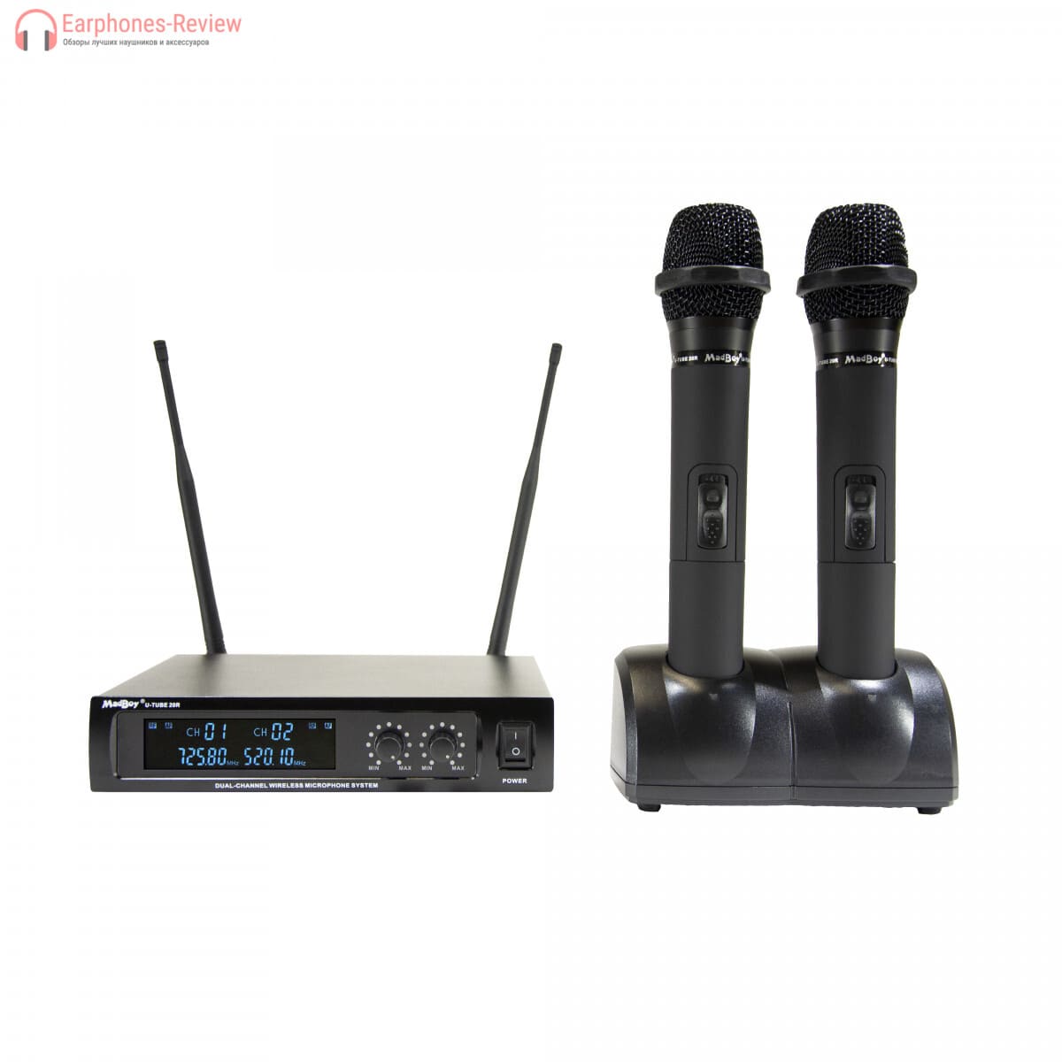U-Tube 20R – флагманский в своем сегменте продукт MadBoy. Модель представлена базой с двумя беспроводными перезаряжаемыми микрофонами. Каждый работает от пары аккумуляторных батарей AA.