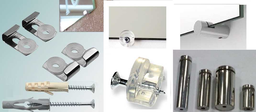 Можно также обратиться к такому виду фурнитуры, которая не предусматривает собой осуществление определенных отверстий. Это обосновывается тем, что способ не сквозного типа является более щадящим и безопасным, как для владельца, так и для самого зеркала.