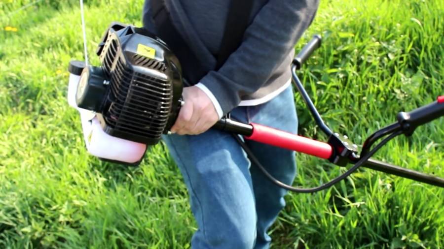 Вручную проворачиваем вал, включаем косу на малые обороты без нагрузки. Это нужно для того, чтобы смазка качественно распределилась по местам, подверженным максимальному трению.