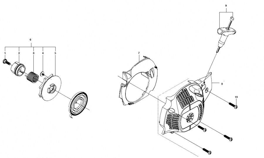 - верхняя часть. Основа всей конструкции, где собраны все важные элементы, такие как стартер, карбюратор и двигатель бензокосы;
