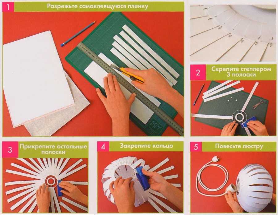 Если у вас нет каркаса, не беда, мы покажем, как сделать абажур для люстры и без него. Он может быть абсолютно любой формы. В качестве основы подойдёт воздушный шарик и даже небольшая картонная коробочка.