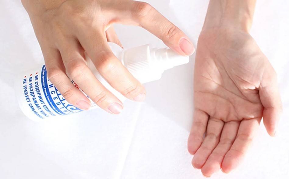 Спрей в нужном количестве наносится на ладони. Его нужно распределить по всей поверхности рук и тщательно втирать до полного высыхания. Но таким способом все-таки невозможно полностью удалить все вредные микроорганизмы. Чтобы средство защищало руки эффективнее, спрей необходимо наносить на чистые руки, предварительно помыв их водой с мылом.