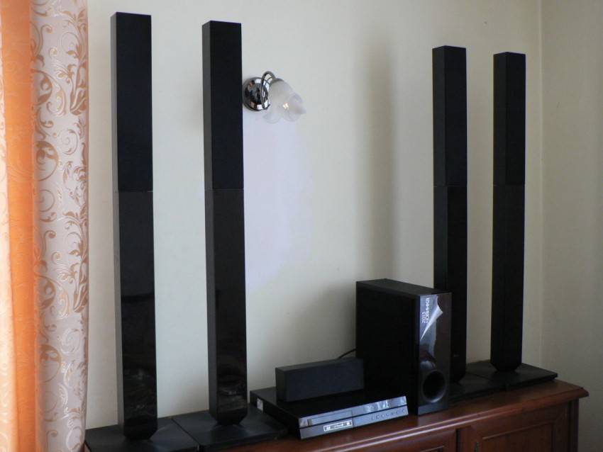 К примеру, домашний кинотеатр разбивает музыку стерео и моно на потоки (6 или 7), создавая звук вокруг. Как известно, в последнем случае имеется ряд вариаций, самая распространенная – 5.1. Где 5 обозначает число колонок – центральная (фронтальная), левая и правая передние, левая и правая задние. Под единичкой понимается сабвуфер. Домашний кинотеатр комплектуется собственными колонками либо акустическая система покупается отдельно.