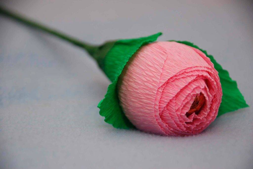 Вставляем проволоку в основание бутона и скручиваем бумагу несколько раз.
