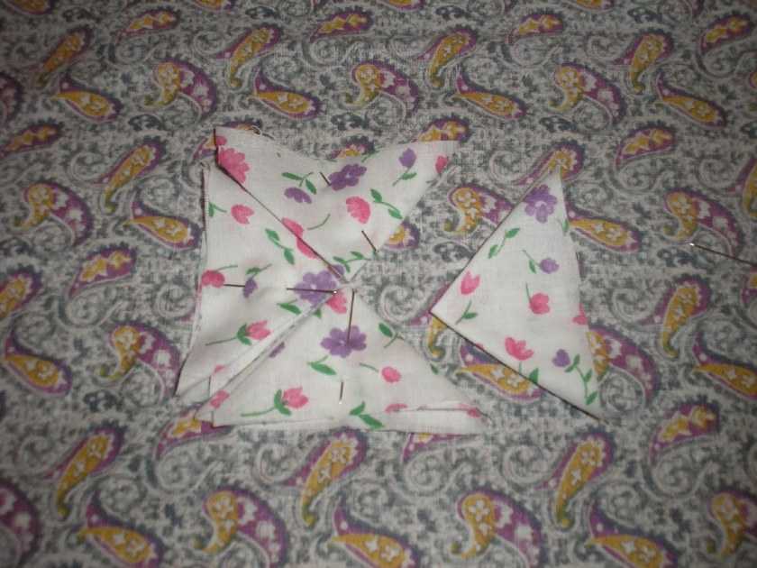 * Прикрепите булавками джинсовую ткань к брезенту (или другой плотной ткани, которую вы выбрали для коврика).