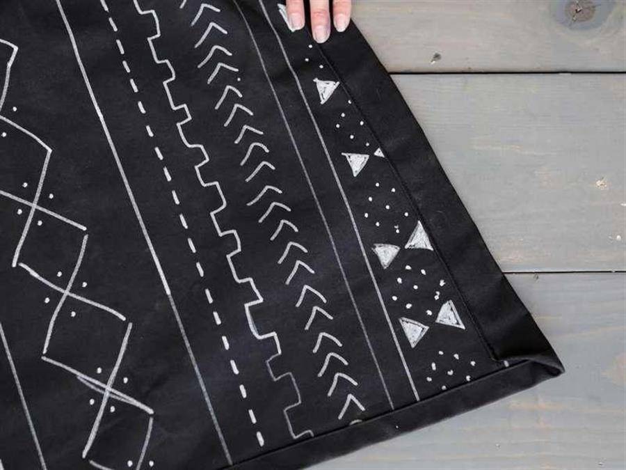 Обрезаете материал, подшиваете края и наносите красками узоры