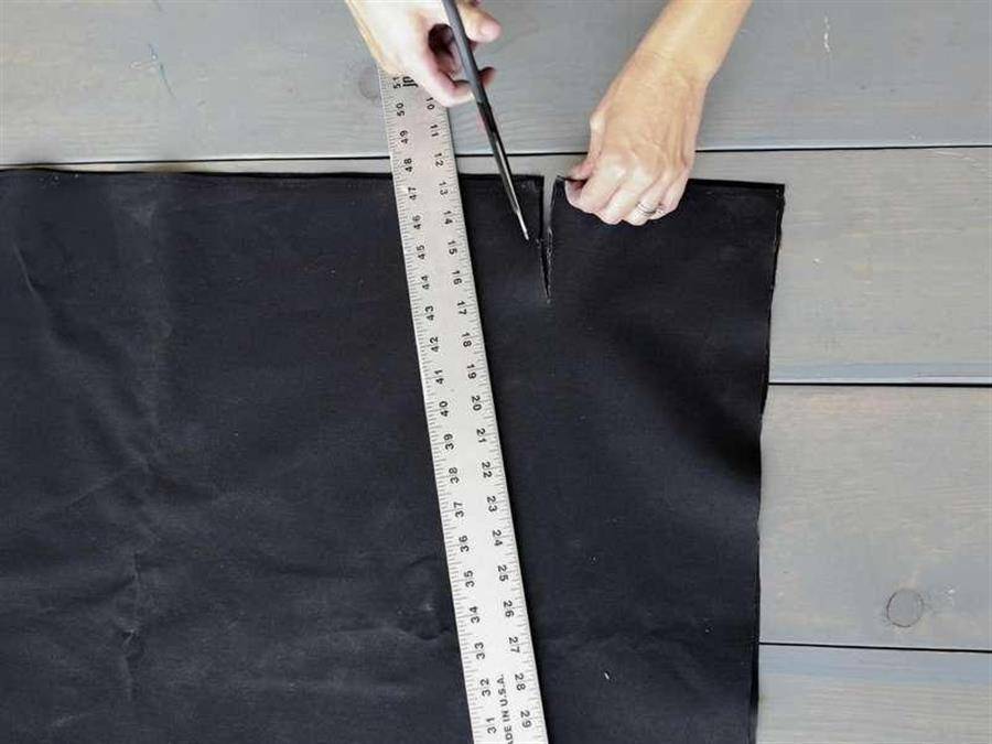 Определившись с размером, обрезаем края заготовки из ткани