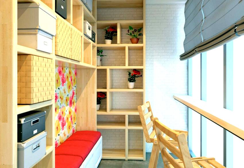 Если вы планируете сделать пристройку уютной и стильной, обратите внимание на шкафы для балконов и лоджий с интегрированными полками. На таких конструкциях можно держать декоративные предметы и цветы