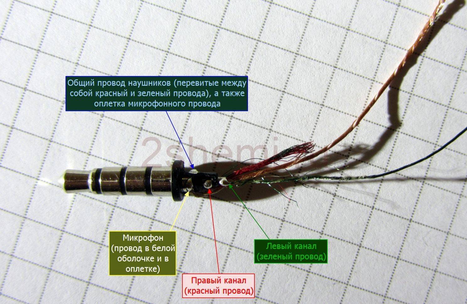 или даже так:то никто вам так сразу не скажет, как правильно припаять штекер к таким наушникам. Тут может быть только один совет: берите тестер и прозванивайте все провода, пока не определите, где правое ухо, где левое. Остальные провода — это к микрофону.