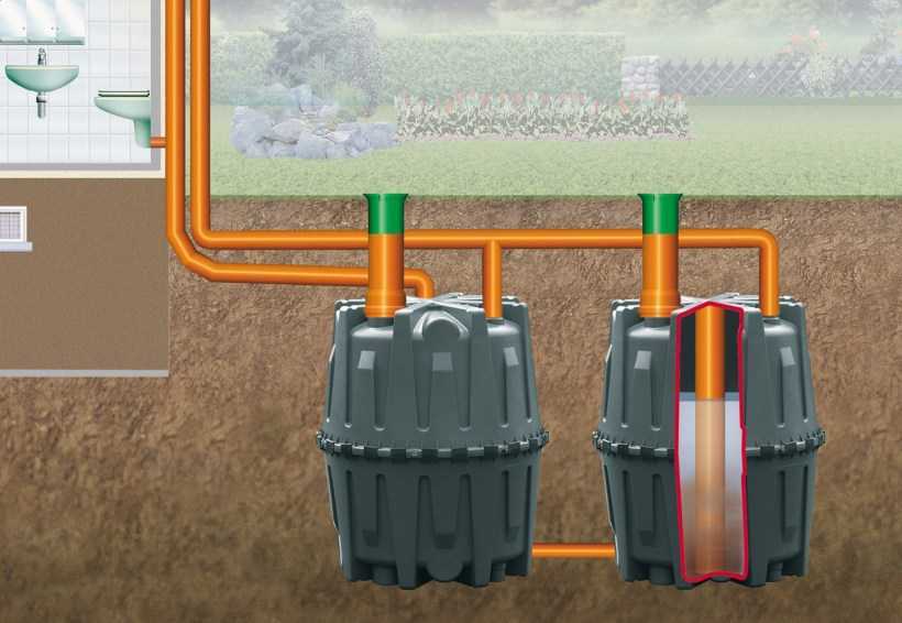 Представляя собой два и более резервуара, соединенные посредством переливных труб, конструкция собирает все сливные потоки, очищает их с помощью биологических составов и выводит газы. Для более качественной доочистки, всегда можно установить дополнительный резервуар, оснастив фильтрующим элементом и получить практически идеально чистую воду для технических нужд.