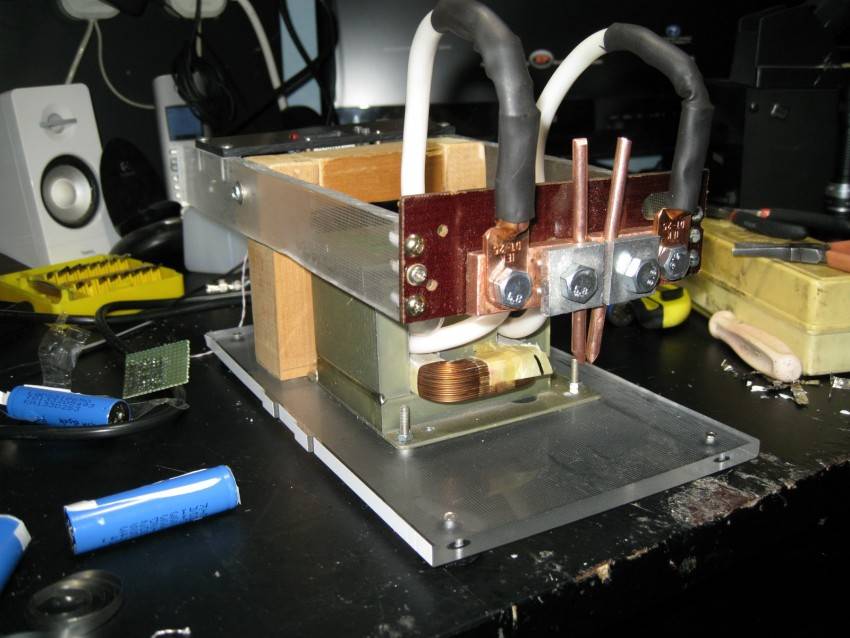 Труднее обеспечить прижим при доступе к деталям только с одной стороны. Например, иначе просто невозможно приварить никелевую ленту к аккумуляторам при сборке литиевой батареи. Пропускать сильный сварочный ток непосредственно через элемент означает – испортить аккумулятор.