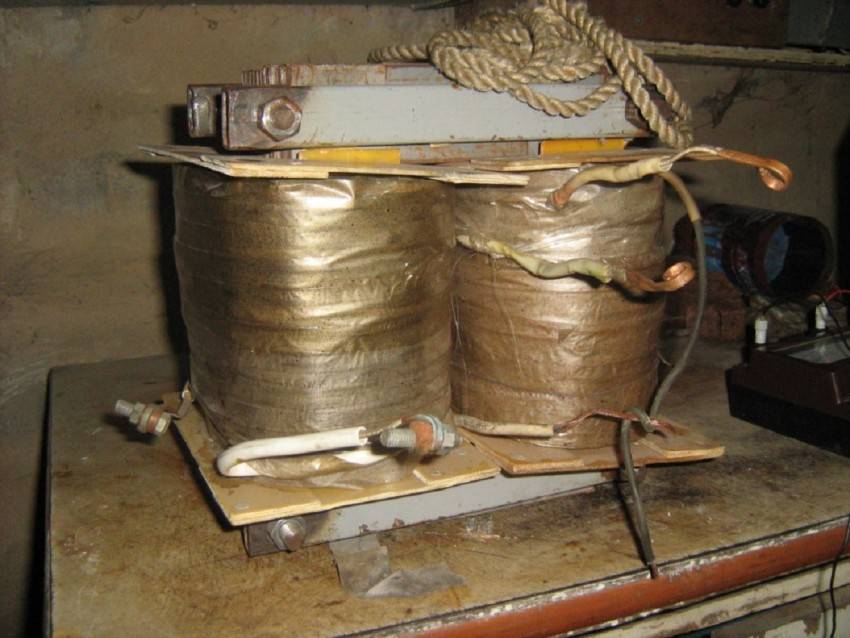 Далее наматываем новую обмотку на трансформатор. Она делается из многожильного провода с сечением не менее 100 мм2 (или диаметром более 1 см)