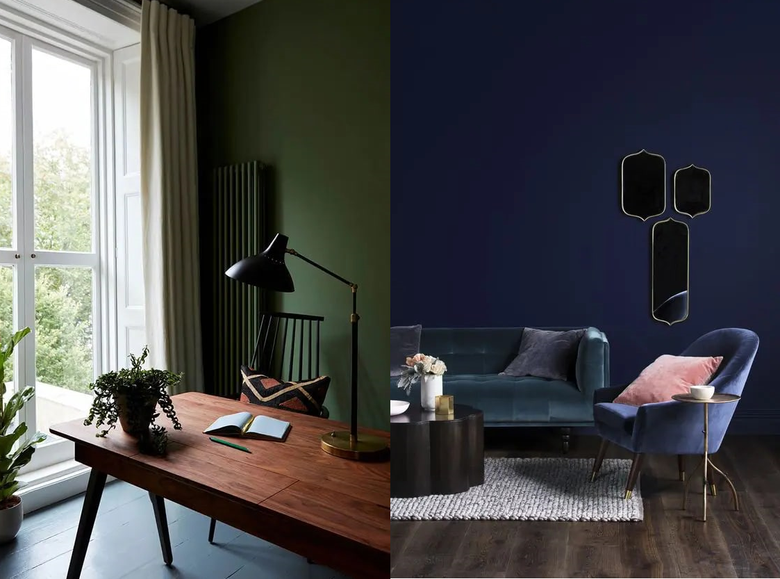 Тёмным стенам не доверяют, хотя именно они гарантированно делают интерьер визуально богаче. Причём достаточно всего одной стены в глубоком оттенке — акцентной.
