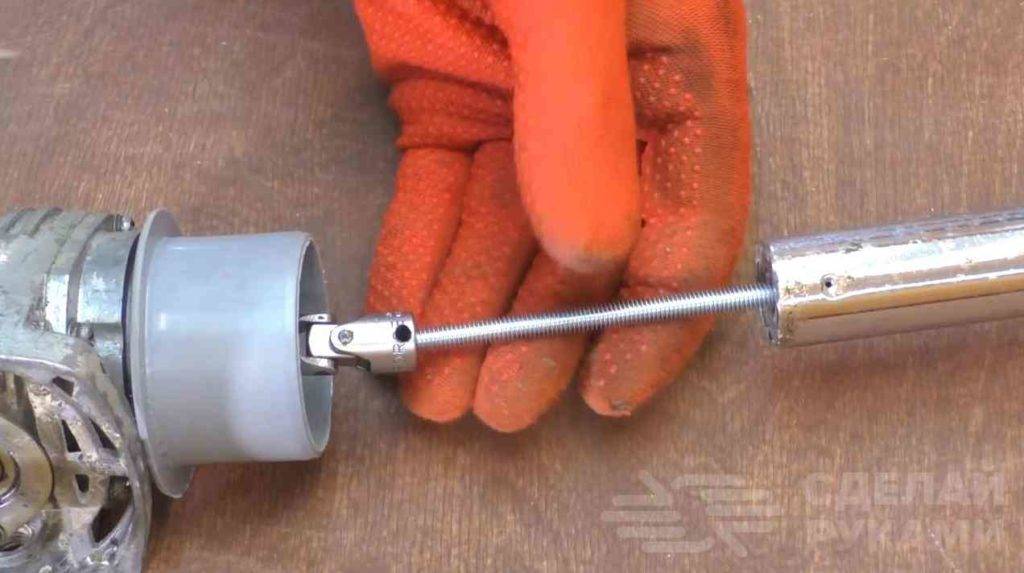 К корпусу редуктора автор прикручивает заглушку для пластиковой канализационной трубы. К свободному концу вертлюга крепится конец шпильки.