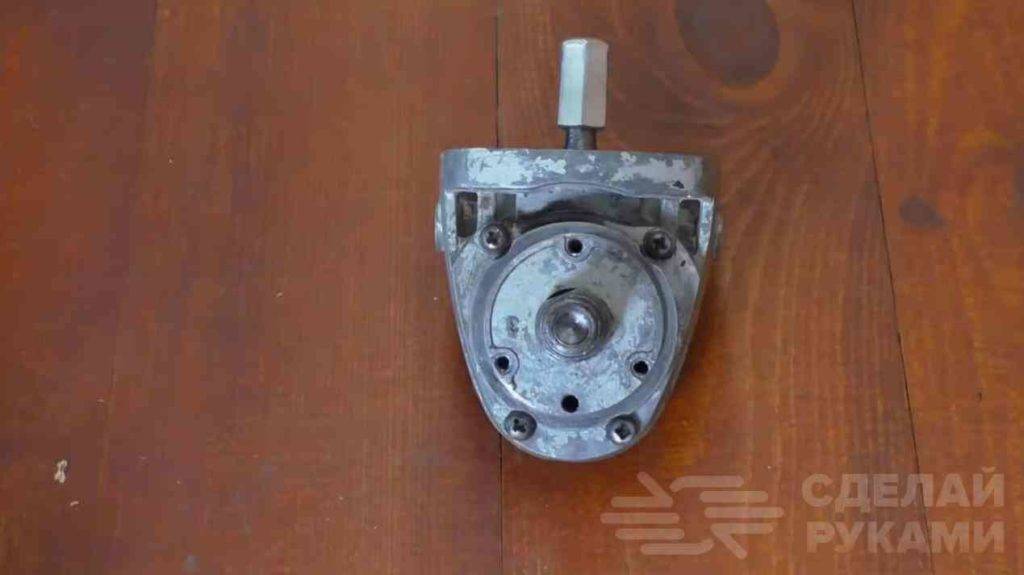Также надо будет поработать немного с валом редуктора. В нем необходимо рассверлить «посадочное место» под вертлюг, а сбоку — просверлить отверстие для его фиксации.