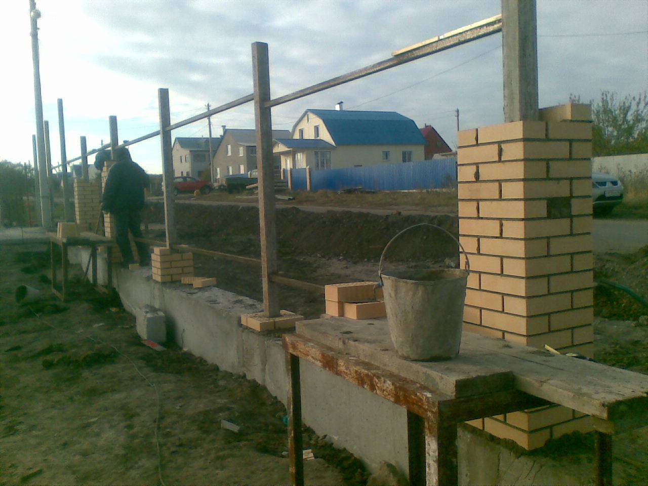 Строительство кирпичных столбов для забора