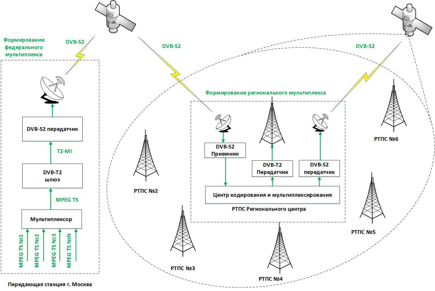 Основной принцип работы сводится к передаче «цифры» через цифровые телевышки, которые способны охватить в радиусе до 80 км области. Теперь даже в сёлах и дачах появился (или скоро появится) доступ большому количеству телеканалов. При этом качество сигнала практически не ухудшается при любых погодных условиях, независимо от расстояния до вышки.