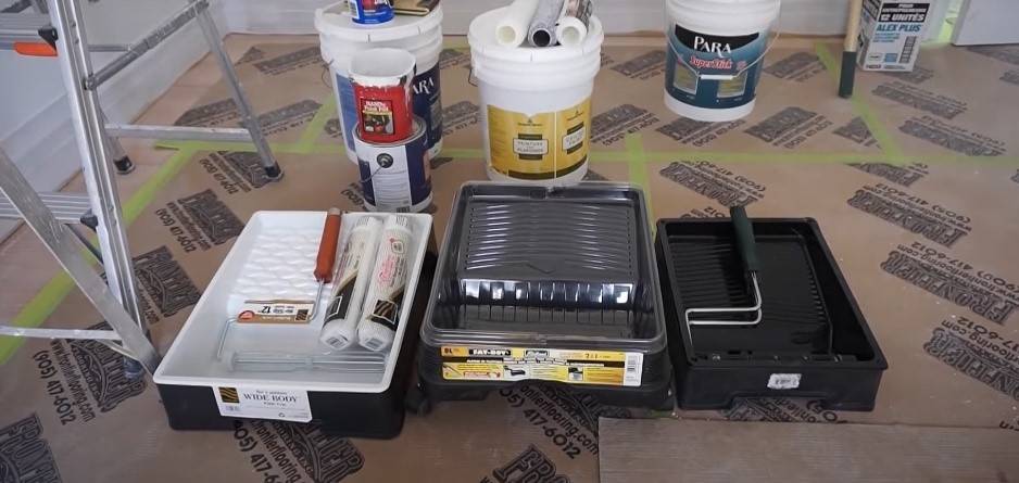 Перед работой необходимо напитать валик лакокрасочным составом по всей поверхности. Для этого краска переливается из банки в специальный пластиковый лоток, с которого легко вести дозировку.