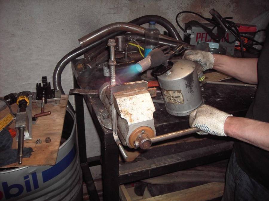 После ввода пружины к месту планируемого изгиба заготовки перед сгибанием необходимо нагреть район сгиба паяльной лампой. После этого можно выполнить изгиб изделия с помощью специальной болванки с таким радиусом, который должен совпадать с необходимым внутренним радиусом сгибаемой детали.