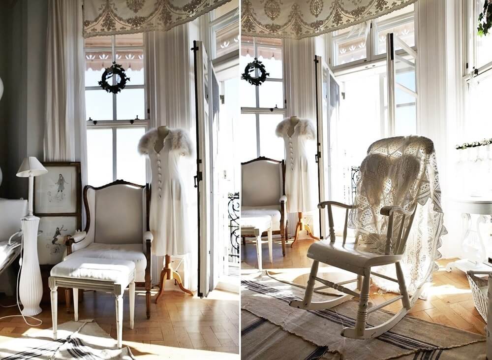 Среди других подходящих аксессуаров можно отметить металлические подсвечники, старинные часы, картины, написанные масляными красками либо акварелью, оригинальные стеклянные флаконы, заполненные духами, кукол с фарфоровыми лицами.