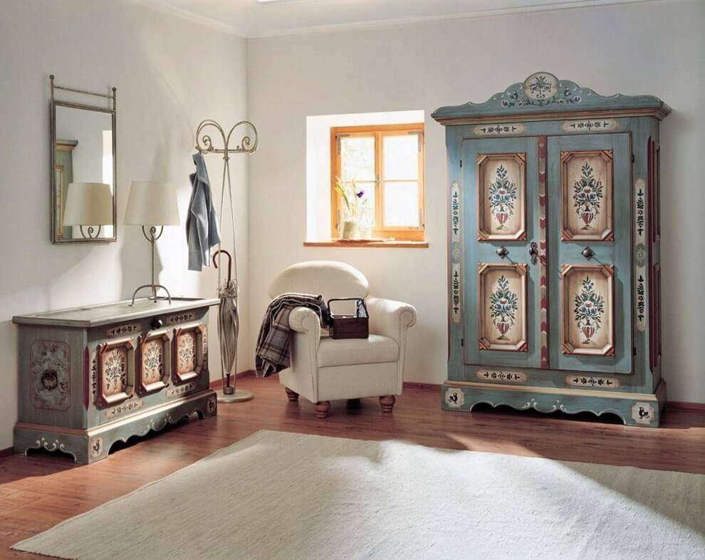 Независимо от основной отделки, стиль невозможно создать без мебели. Для соответствия винтажному направлению, она обязательно должна быть старинной или стилизованной под старину. Неплохо, если присутствуют следы потёртостей или мелкие трещинки, свидетельствующие о прошлом. Но при этом мебель должна оставаться прочной и эстетичной.