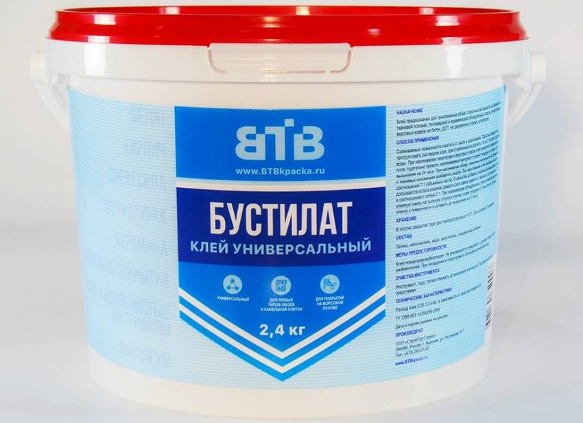 Для бытового применения дешевле использовать клей на водной основе, наиболее популярный и распространенный вариант — ПВА в чистом виде и клеевые составы, где он является основным компонентом (Бустилат). Для наклеивания линолеума можно использовать недорогой клей строительный (КС) на основе жидкого стекла и следующие виды клеевых составов: