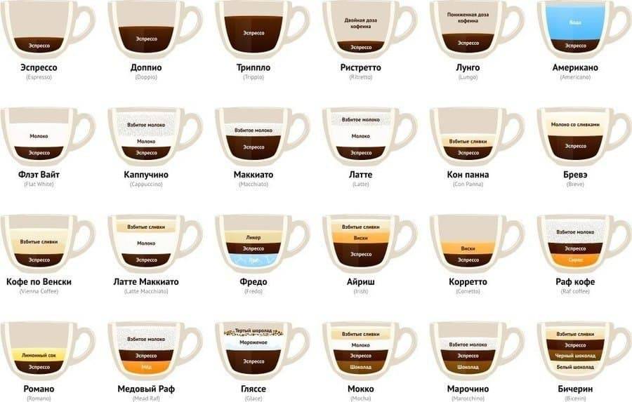 Существует масса вариаций приготовления кофейного напитка. Рассмотрим наиболее популярные из них.