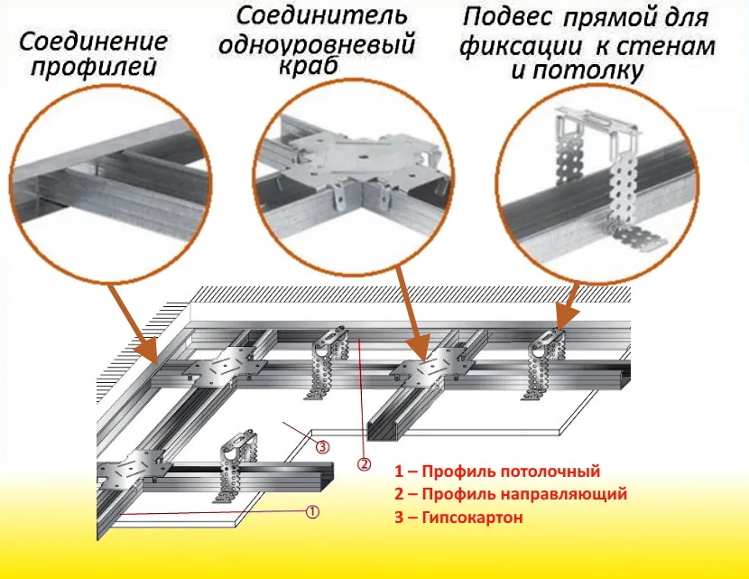 Детали для крепления потолка из гипсокартона Источник yandex.net