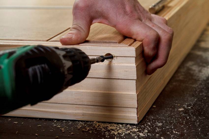 Собирается короб с помощью саморезов, гвоздей или посредством выпиливания замочка по типу «шип-паз». Для последнего типа планочки соединяются строго перпендикулярно