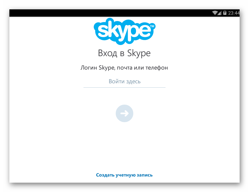 Регистрация проходит примерно так же, как и на настольном компьютере. Если у вас есть аккаунт, то при запуске сразу введите его логин в соответствующей строке. Подходит как аккаунт Skype, так и учётная запись Microsoft.