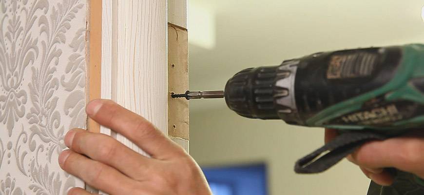 По такому же принципу прибиваем наличники с другой стороны двери. В месте, где установлены доборные планки, ровняем края наличников по ним.
