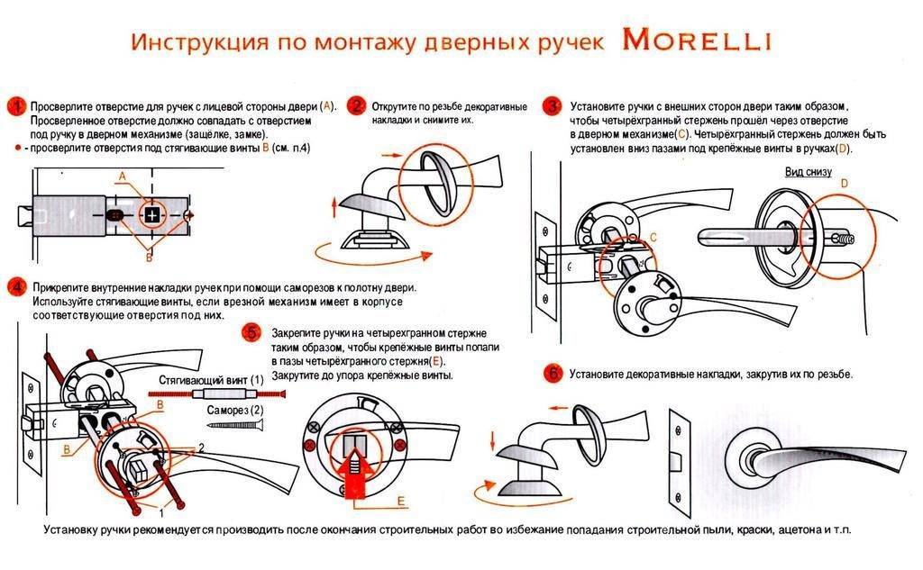 Изделия со спрятанными шурупами подлежат разборке. В помощь вам будет инструкция и специальный ключ. Рукоять снимается без проблем путем нажатия на стопор ключом. Ручку устанавливают на место после того, как разборная часть будет привинчена болтами.