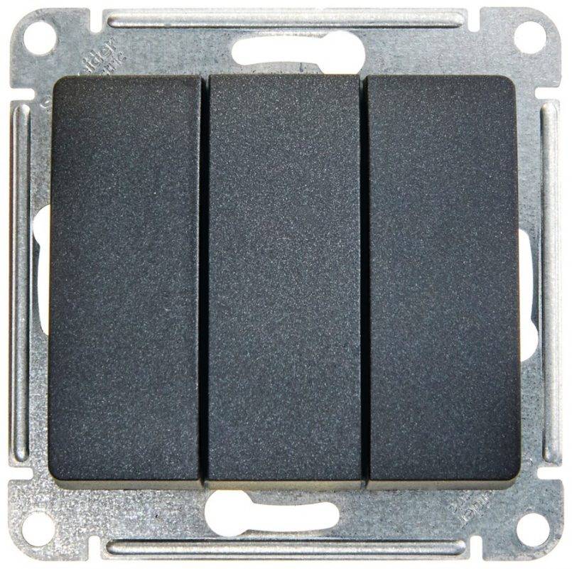 - Трехклавишный выключатель, как и двухклавишный, предназначен для контроля сразу нескольких электроприборов. В данном случае одну из клавиш часто используют для управления не только лампой, но и кондиционером или жалюзи. У таких выключателей есть один значительный минус – это залипание клавиш. Если вам необходимо контролировать несколько (три и больше) приборов одним выключателем, лучше использовать комбинацию из выключателей двух первых типов.