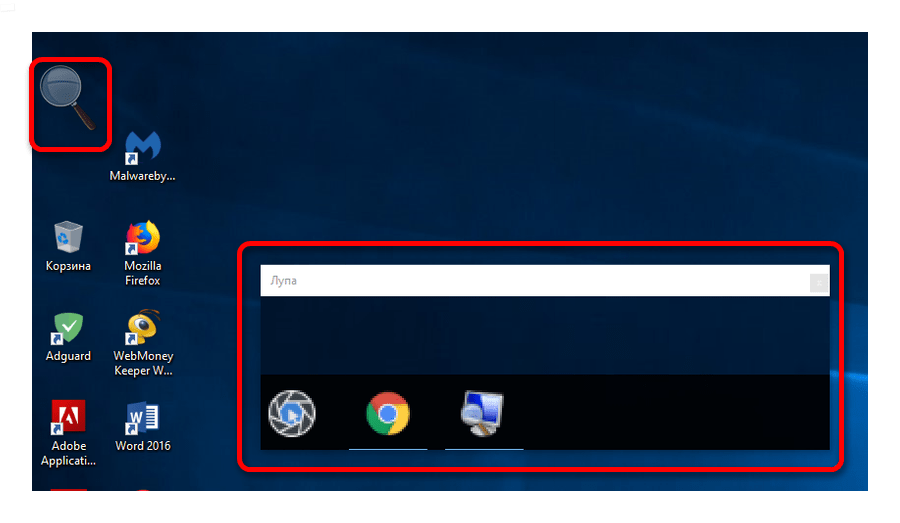 Для того, чтобы вызвать экранную лупу, воспользуйтесь одним из трех способов: