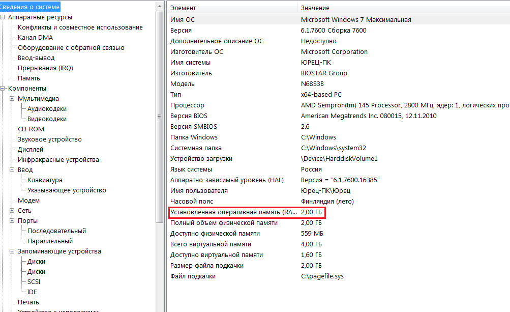 Как узнать сколько оперативной памяти на компьютере